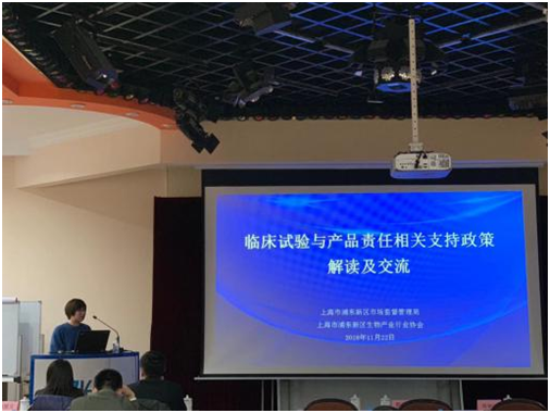 为帮助企业了解并落实市委办公厅、市政府办公厅《关于深化审评审批制度改革鼓励药品医疗器械创新的实施意见》提出的32条具体举措和药品上市许可持有人制度、医疗器械注册人制度中关于引入市场化保险机制,以及对上海市符合条件的生物医药人体临床试验责任保险和生物医药产品责任保险予以保费50%的财政支持,提高从业单位风险防范意识和抵御风险能力,上海市浦东新区市场监督管理局、上海市浦东新区生物医药行业产业协会于11月22日举办上海市浦东新区临床试验与产品责任相关支持政策解读及交流会议,企业积极参与体现出上海市生药企业极大的创新活力及上海市政府对生物医药行业大力的支持。
